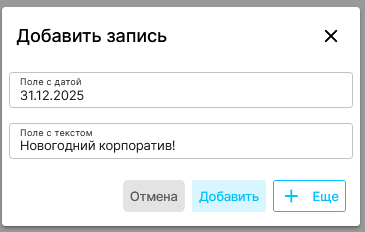 Кнопка “+ Еще” позволяет перейти к заполнению следующей строки, не закрывая диалоговое окно. |