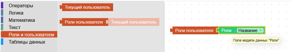 | Блоки коллекции “Роли пользоваелей” используются для разграничения отображения экранных форм пользователям с определенной ролью. | |