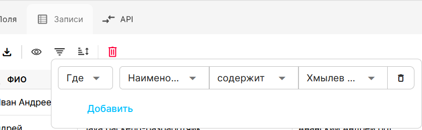 Для того чтобы внести в таблицу новые данные, нажмите “Добавить запись”. |